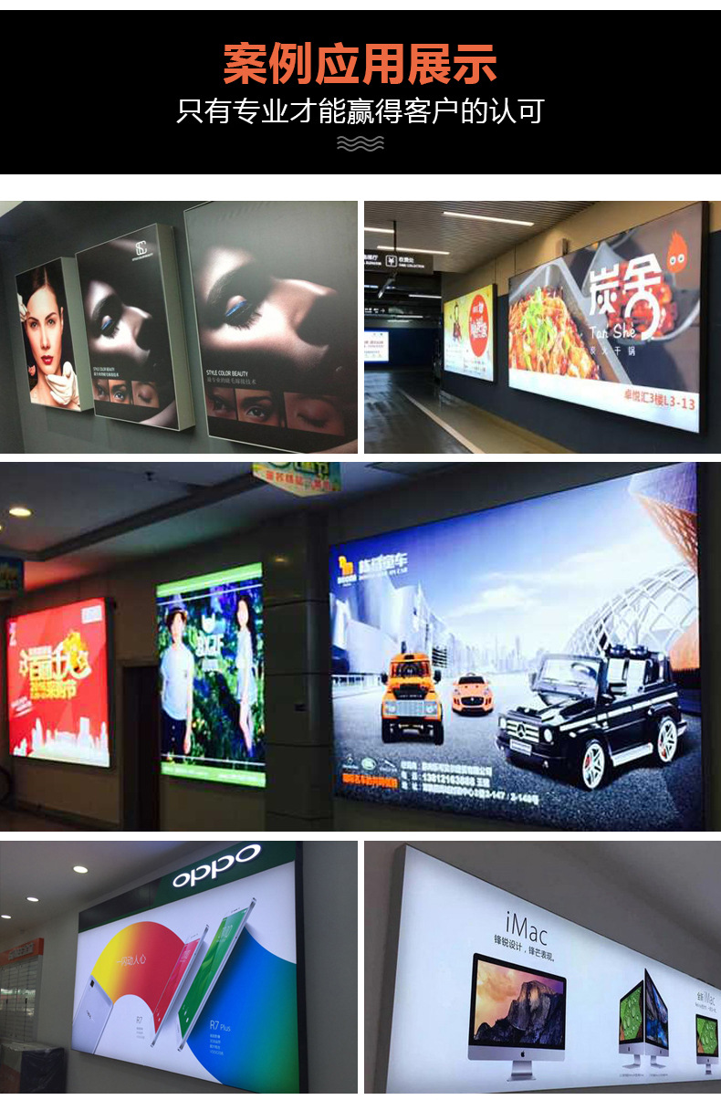 2.由于燈箱定做尺寸一旦確定后無法修改,所以定做尺寸不給予退貨,并且一切產生的運輸費用由買家承擔,請買家考慮好再拍;