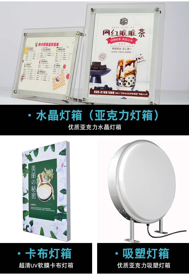 3.本店銷售燈箱均不含燈片,如需印刷燈箱片需另外收費,并且要提前告知在線客戶;