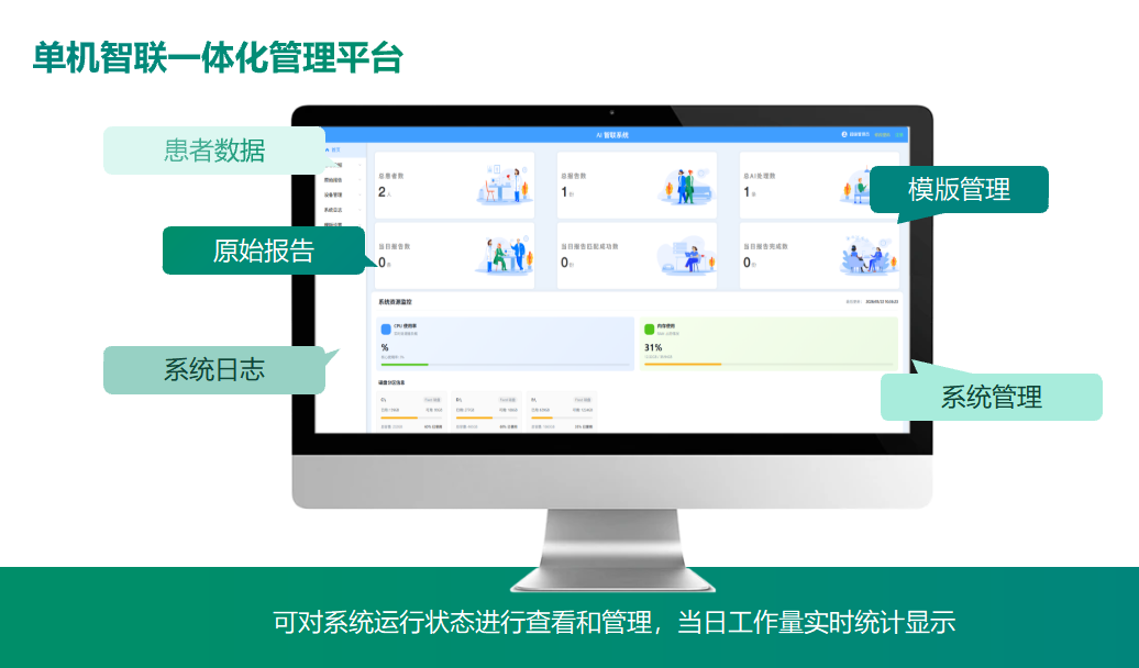 統(tǒng)一管理平臺集中監(jiān)控所有接入設備運行狀態(tài),當日檢查量、成功率、故障率實時統(tǒng)計,助力醫(yī)院精細化運營與績效考核。