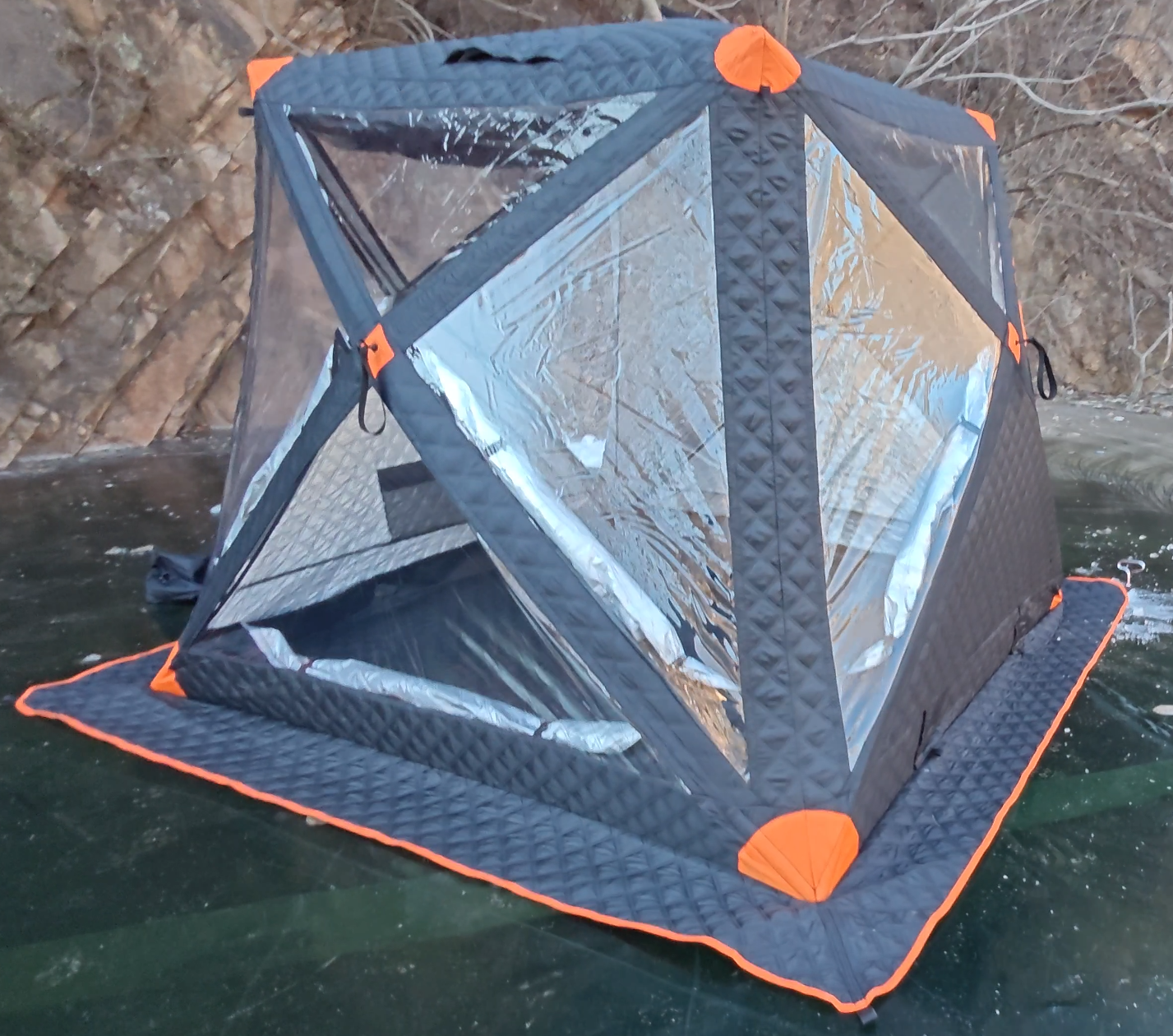 空間表現(xiàn):240×240×180cm 的寬敞內(nèi)部空間,可輕松容納 4-5 人同時垂釣、休憩,搭配裝備也毫無局促感,滿足多人組隊冰釣需求。